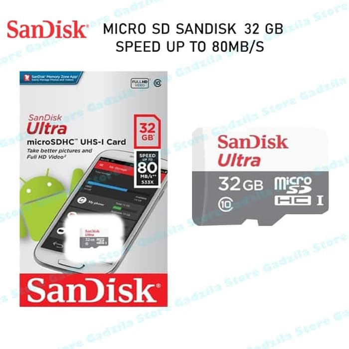 Sandisk ultra new 16gb 32gb 64gb microsdhc microsdxc flash memory card. Has been added to your cart. 32gb san disk ultra 80mb class 10 uhs 1 micro sd memory card. The sandisk ultra microsdhc memory card is suitable for smartphones and tablets that run on the android os. This 32 go micro card was purchased for my car dash camera that needed a high quality sd card.