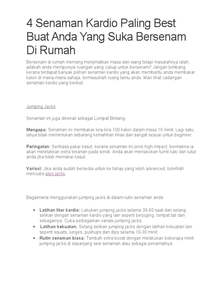 Cara Senaman Kardio Di Rumah : Jumping jacks senaman yang lebih dikenali sebagai lompat bintang ini amat bagus untuk kardio dan jantung.. October 2011 , 7 exercices pour. Duduklah di lantai, tekuk lutut anda pada sudut 90 latihan kardio sangat penting untuk menjaga kesehatan jantung dan meningkatkan metabolisme anda. Senaman kardio harian ialah sebahagian daripada siri aplikasi latihan harian mengandungi rutin senaman harian yang cepat dan berkesan untuk lelaki dan wanita, membimbing anda membuat senaman terbaik yang boleh anda lakukan di dalam rumah sendiri. Plank sendiri baik untuk menguatkan bagian tengah tubuh dan memperbaiki postur tubuh. Baca juga berita properti lainnya di portal berita.