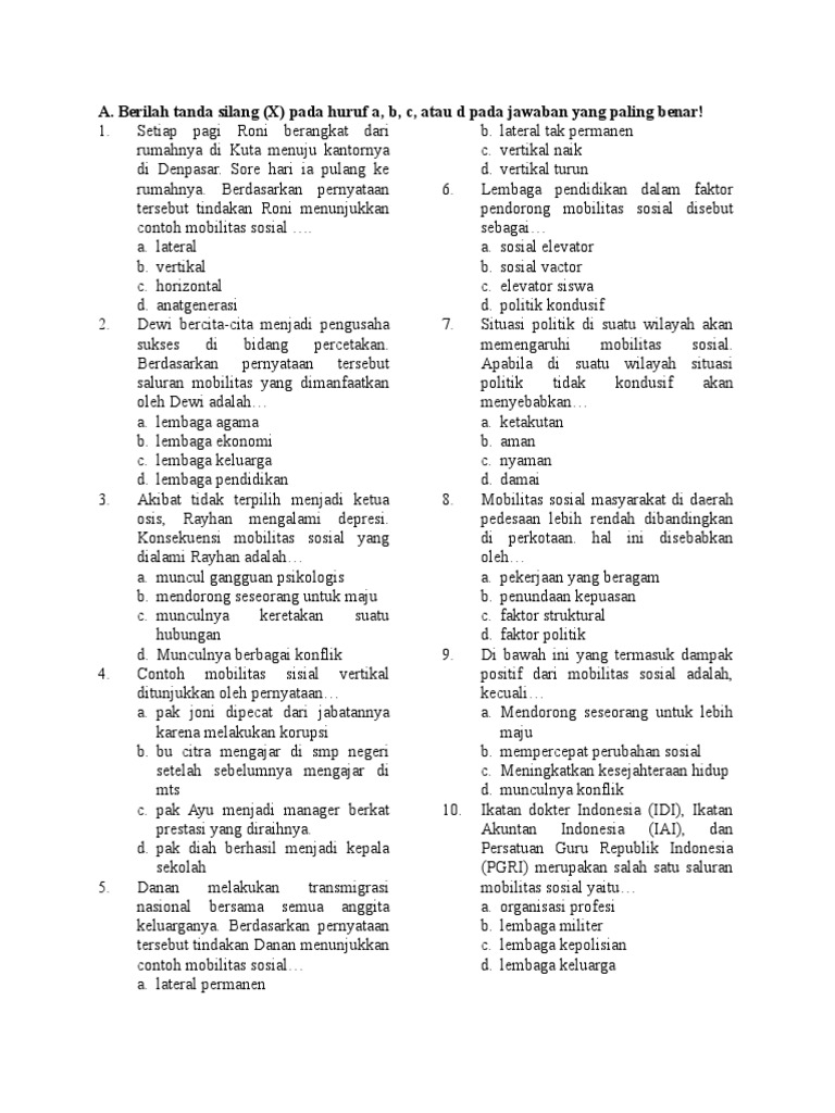 Mobilitas permanen, yaitu mobilitas yang bermaksud melakukan perpindahan permanen. Pernahkah kamu berpikir mengapa terdapat kesenjangan sosial di sekitar kita? Seorang anak menjadi dokter 2. Mobilitas sosial lateral atau geografis merupakan mobilitas baik secara individu ataupun kelompok, dari unit wilayah satu ke unit wilayah lain yang secara tidak langsung mengubah status sosial seseorang. Arti mobilitas sosial adalah perpindahan posisi individu atau kelompok dari lapisan sosial yang satu ke lapisan sosial yang lain. Secara etimologis, mobilitas berasal dari bahasa latin mobilitas sosial merupakan perpindahan dari suatu tempat ke tempat lain secara sosial. Mobilitas permanen, yaitu mobilitas yang bermaksud melakukan perpindahan permanen/menetap mobilitas mobilitas intragenerasi adalah mobilitas sosial yang dialami seseorang selama masa hidupnya (dalam satu generasi). Mobilitas sosial lateral adalah perpindahan status individu atau kelompok dari daerah satu ke daerah lain, tetapi tidak mengubah status seseorang secara langsung. Bentuk mobilitas sosial berdasarkan tipenya. Anda semakin penasarankan tentang materi ini, santai sahabat jev edukasi online akan kami bahas tuntas kok. Dalam mobilitas sosial lateral disebut dengan mobilitas geografis. Sementara mobilitas lateral tidak permanen merujuk pada perpindahan seseorang atau kelompok ke wilayah lain yang sifatnya tidak menetap. Mobilitas sosial adalah suatu gerak perpindahan dari satu kelas.